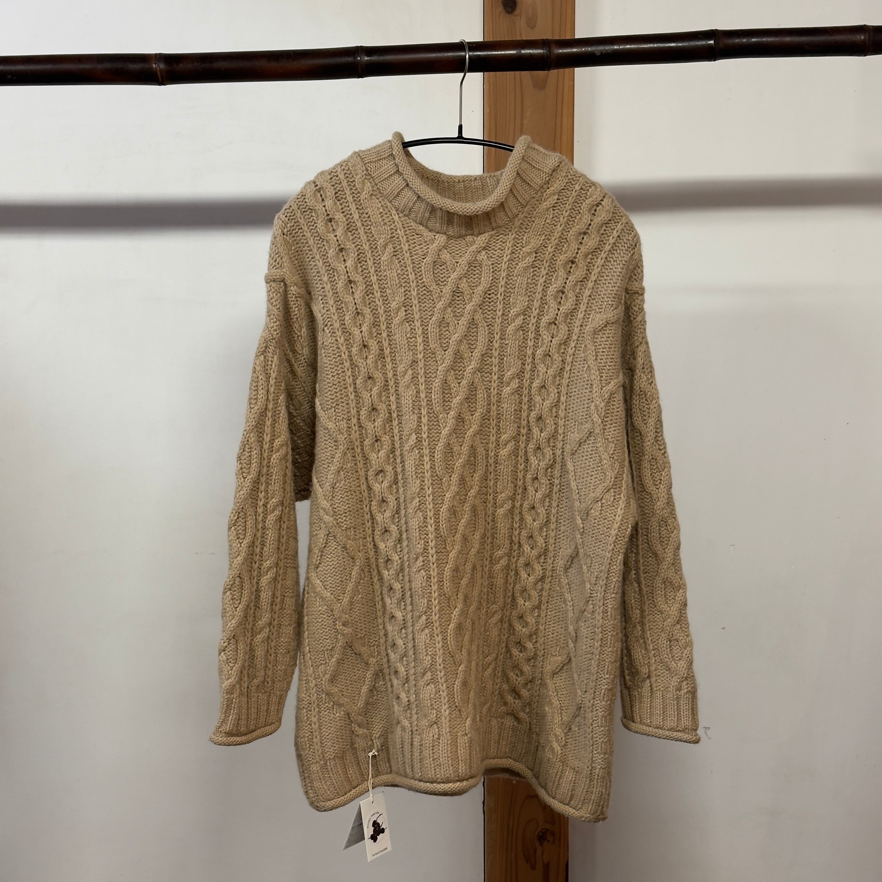 密度のあるケーブル編みが上品に仕上がった、長く愛用できるクラシックな一枚です。
