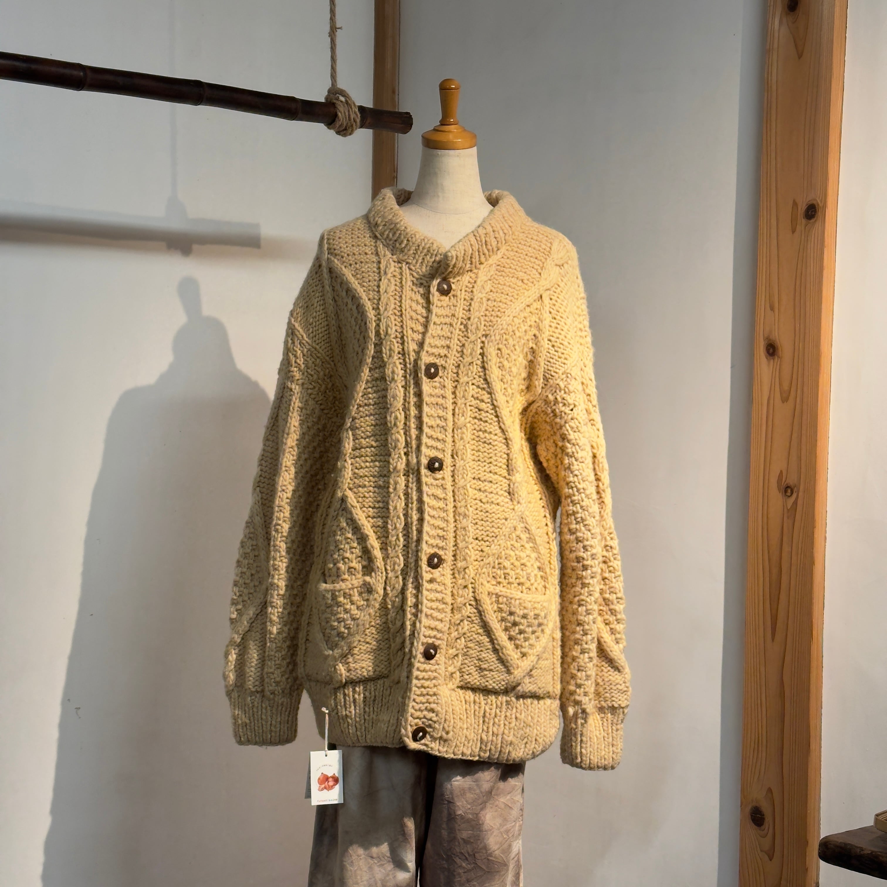 長年着られてきたニットならではの柔らかさや編み地の表情を活かし、futashiba248の天然染料による手染めを施した一点物になります。