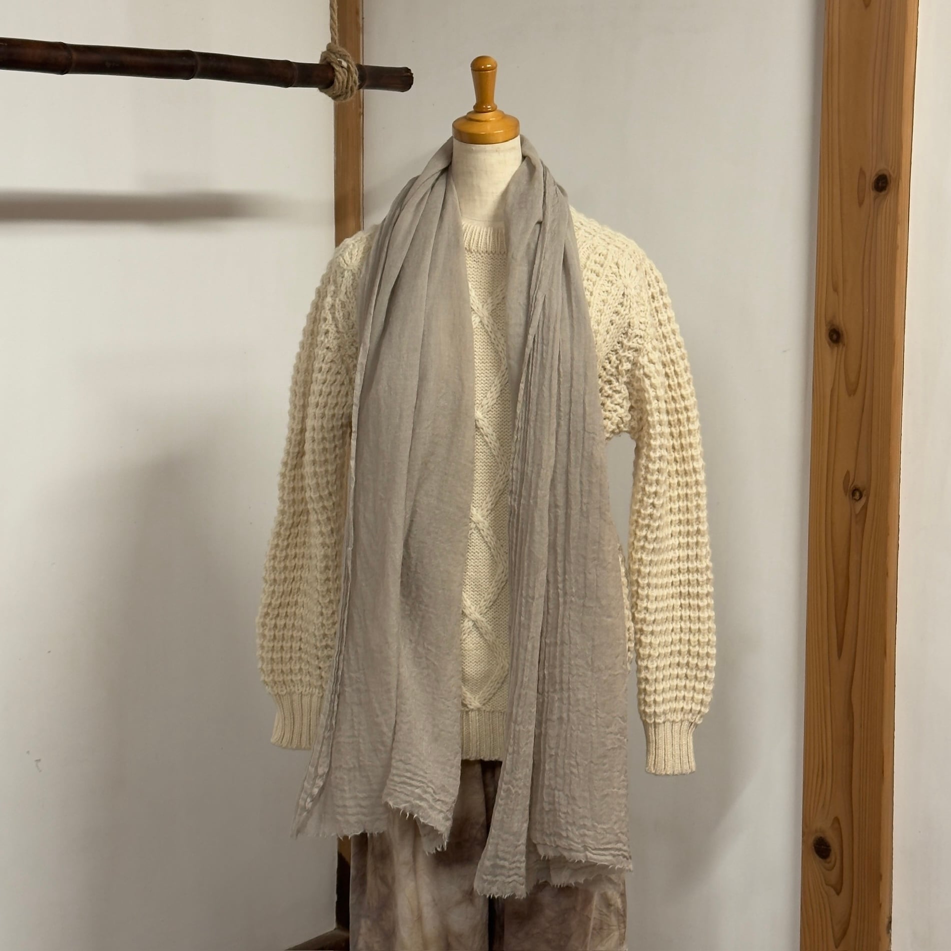 (Hand-dyed wool scarf using natural alder dye from Japan)