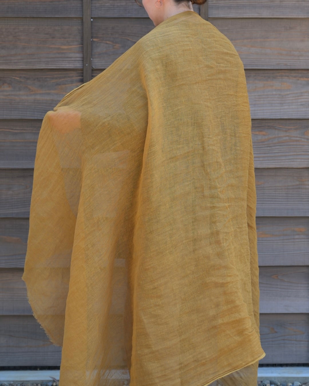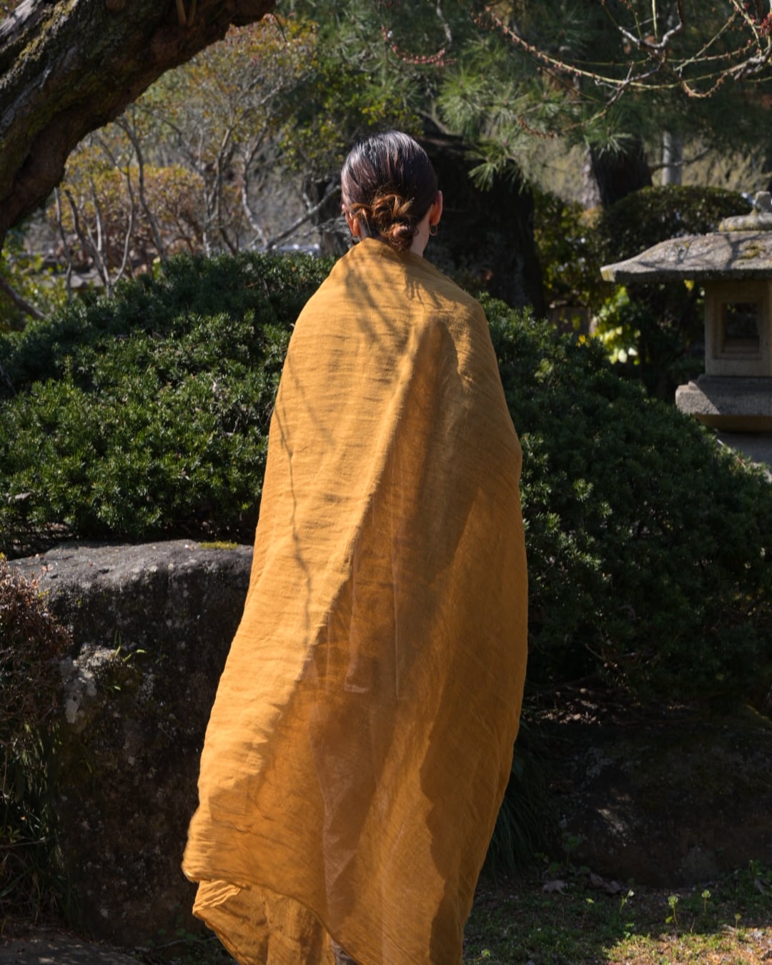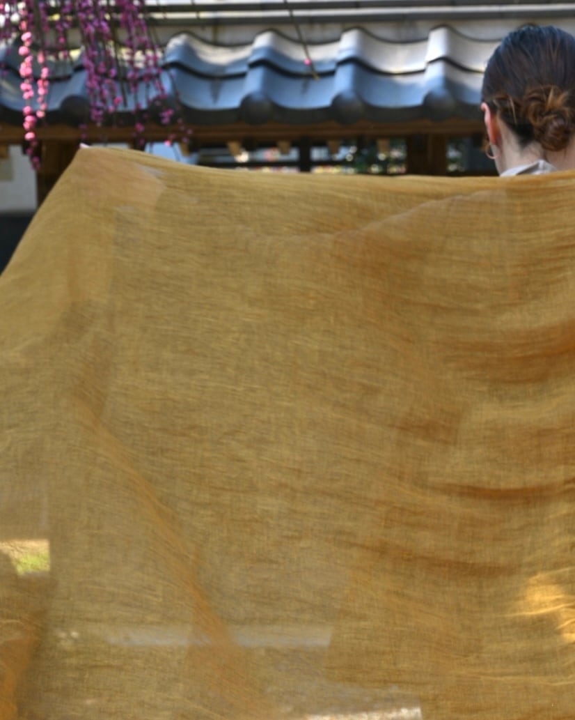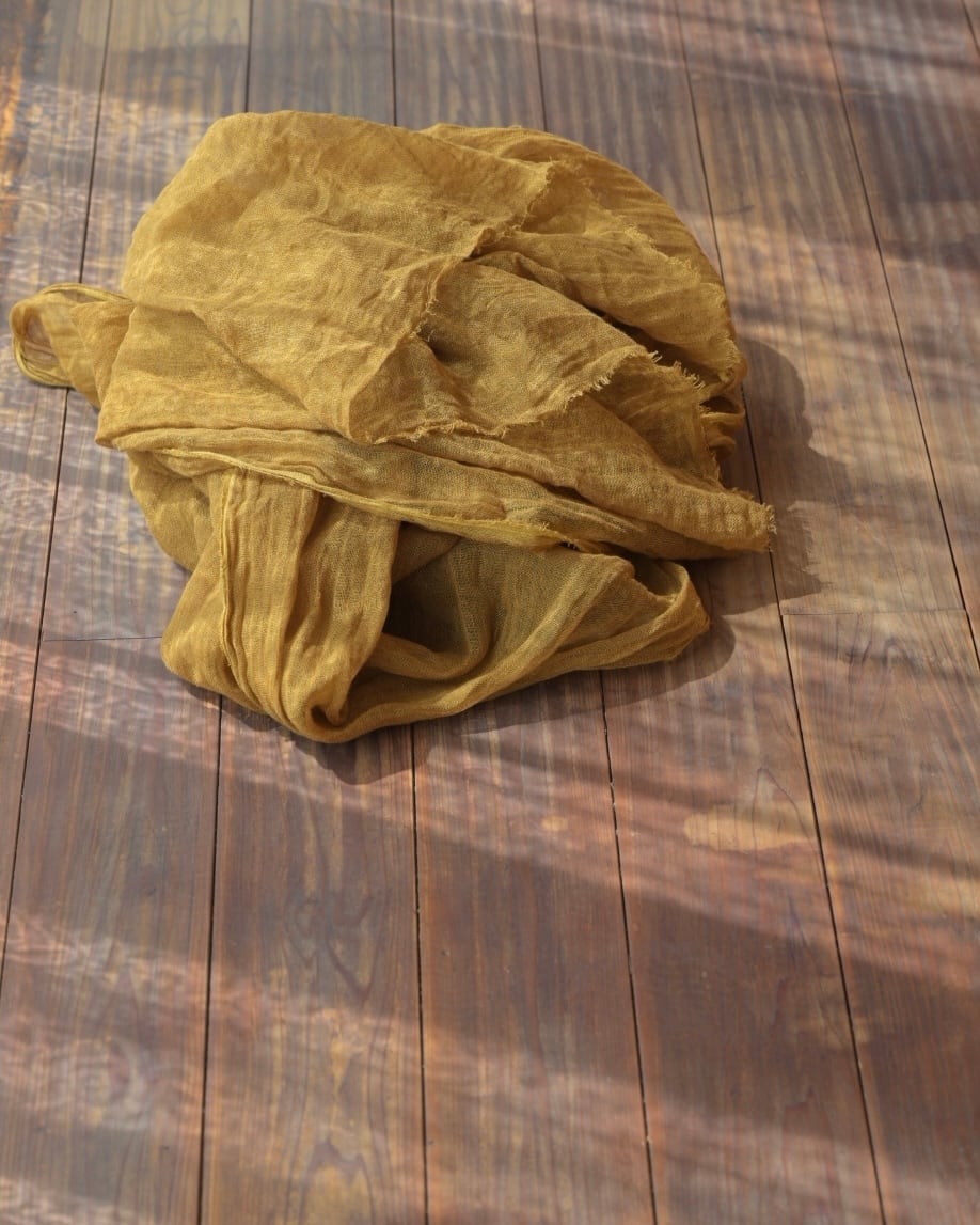 This scarf is hand-dyed in Japan using layered natural dyes( Mimosa ).