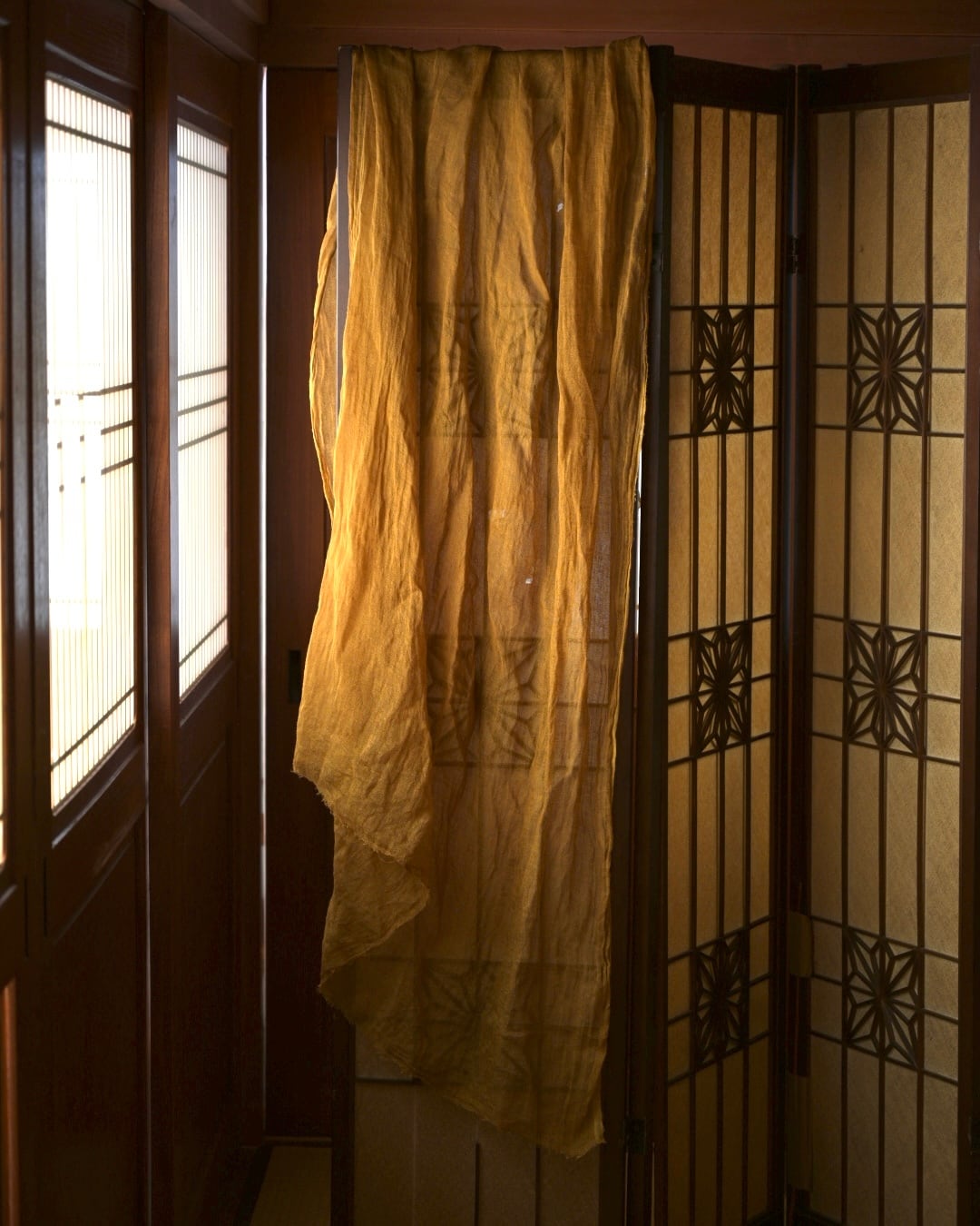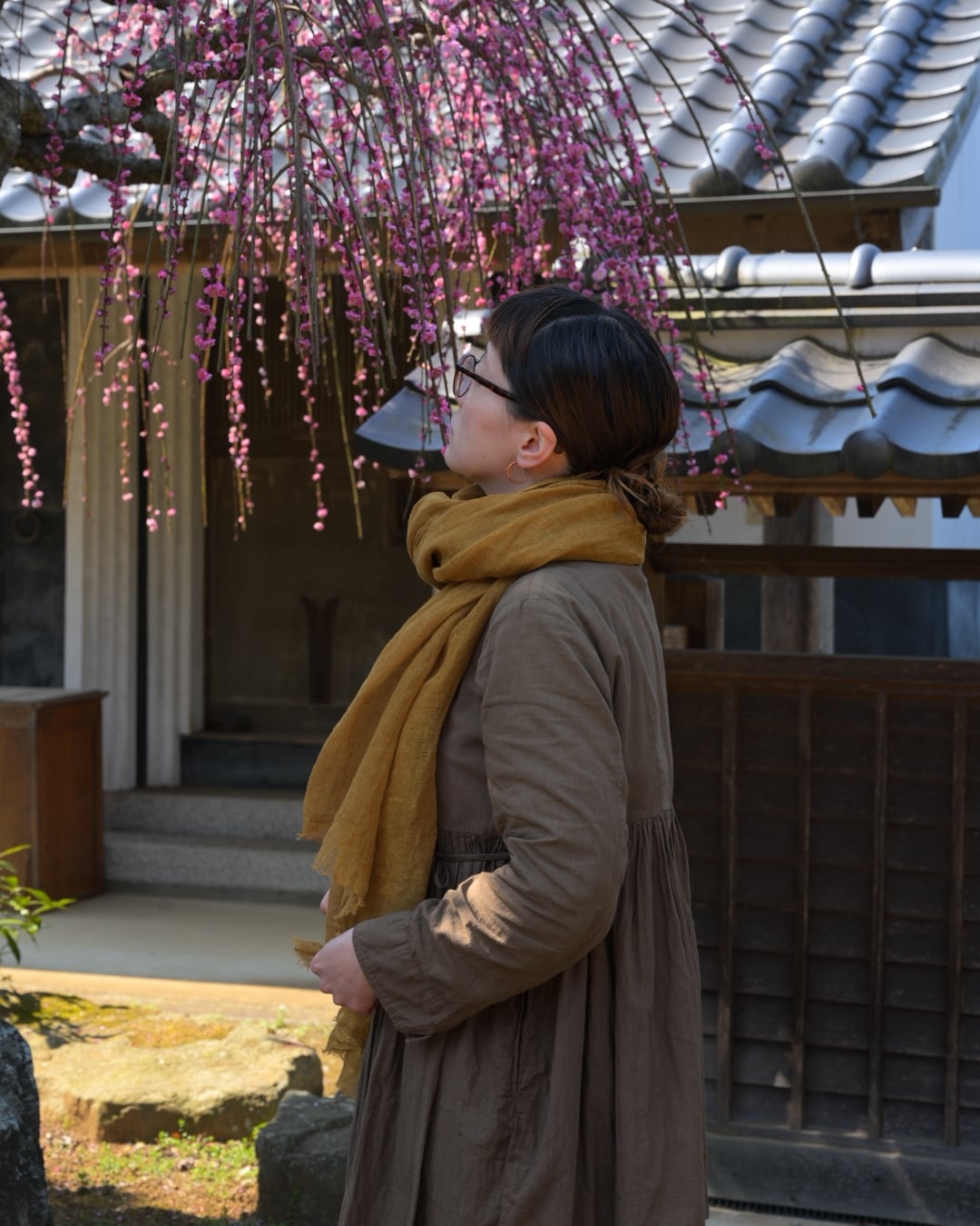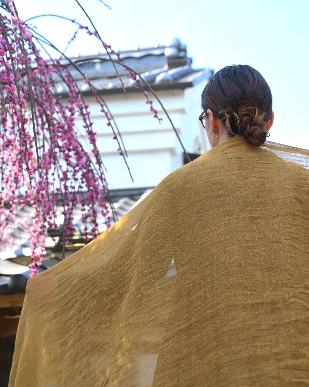 This scarf is hand-dyed in Japan using layered natural dyes( Mimosa ).