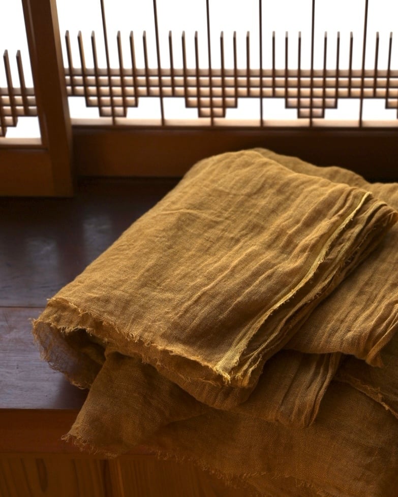 (Hand-dyed linen textile using natural dyes from Japan)